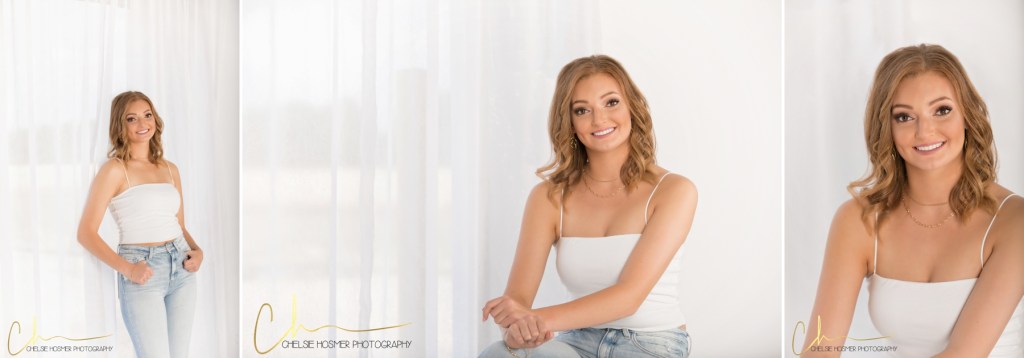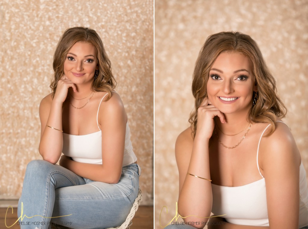 Regan is one of our 2021 senior reps and she absolutely killed it at her senior session! Regan (and her whole family) have been so great to work with! Regan’s senior session reminded me so much of my very own session over a decade ago, we did all the same locations that I had done. Her session started at our studio followed by Schedel Gardens and ended in Pemberville! Her hair and makeup was done at the studio by Linley who comes and sets up before each senior session.