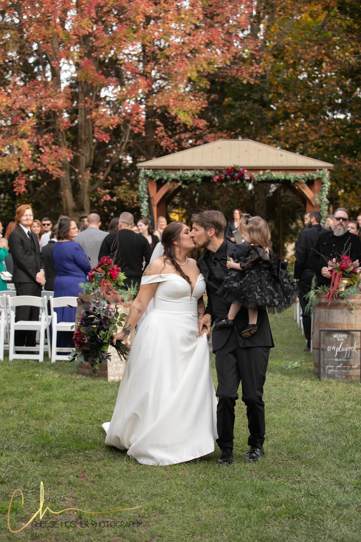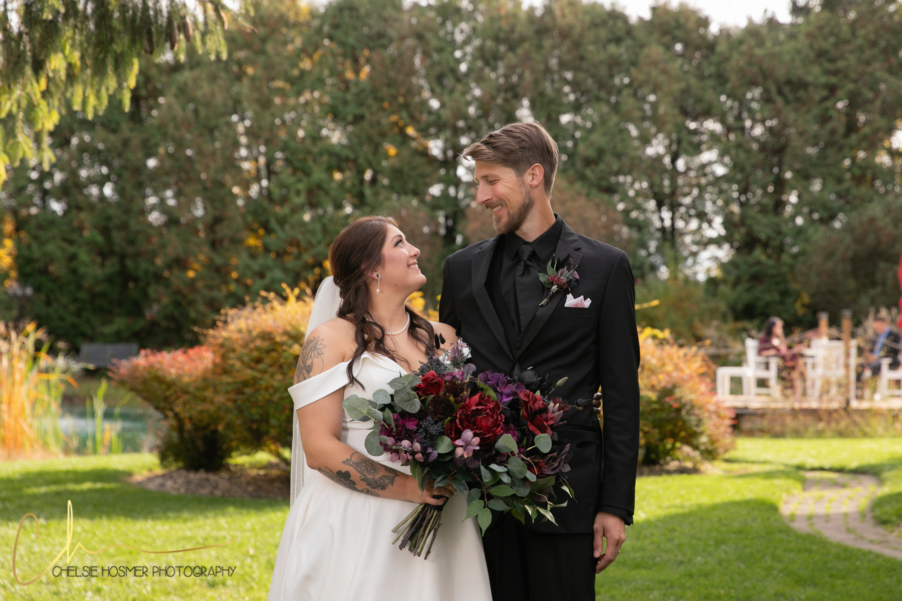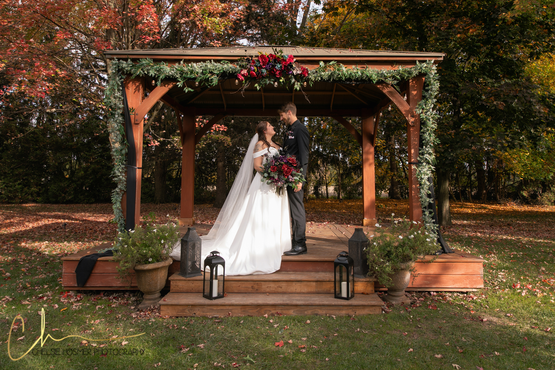 Against the backdrop of the vibrant autumn colors, Crystal’s graceful entrance and Kevin’s anticipation set the stage for a ceremony filled with laughter, tears, and promises of forever as the newlyweds celebrated their union with family and friends. Then off to the reception that was filled of laughter, dancing and good conversation all night long.